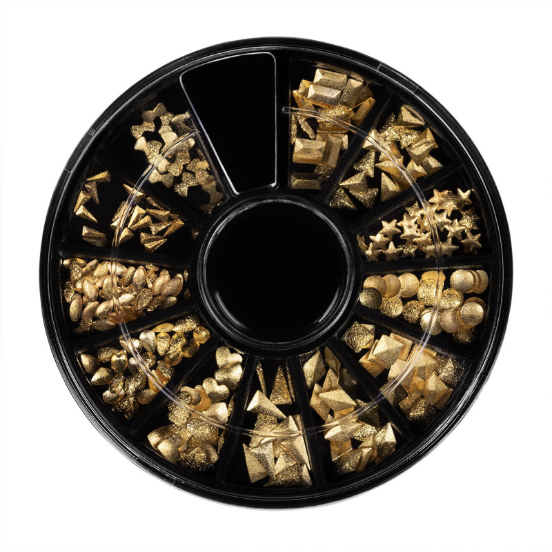 Doosje 04 bevat twaalf gevarieerde gouden nageljuwelen in verschillende vormen, zoals sterren, kristallen, vierkanten, harten, druppels, driehoeken en zelfs decoratieve cirkels. De afmetingen van de elementen variΓ«ren tussen 2 en 6 mm. Hiermee kun je op eenvoudige wijze een perfecte manicure creΓ«ren die aansluit op jouw persoonlijke stijl.